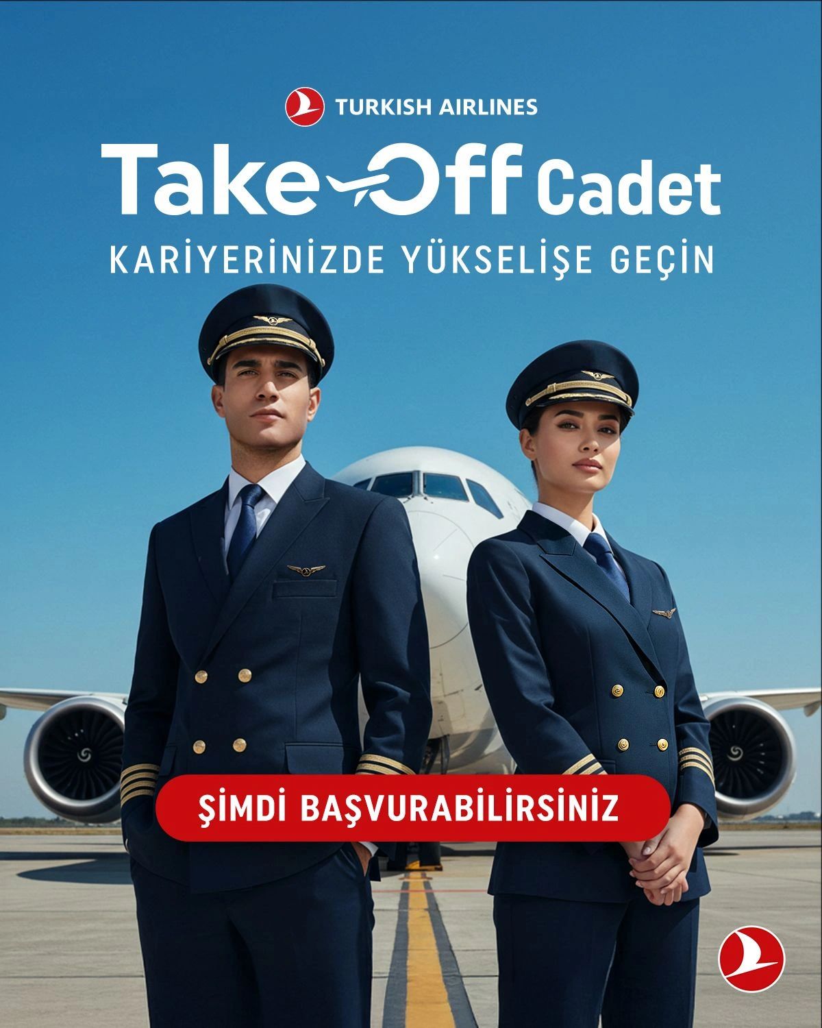 Siz de prestijli bir kariyer sahibi olmak için, Take-Off Cadet Programımıza www.kariyer.thy.com adresimiz üzerinden başvuru yapabilirsiniz.
