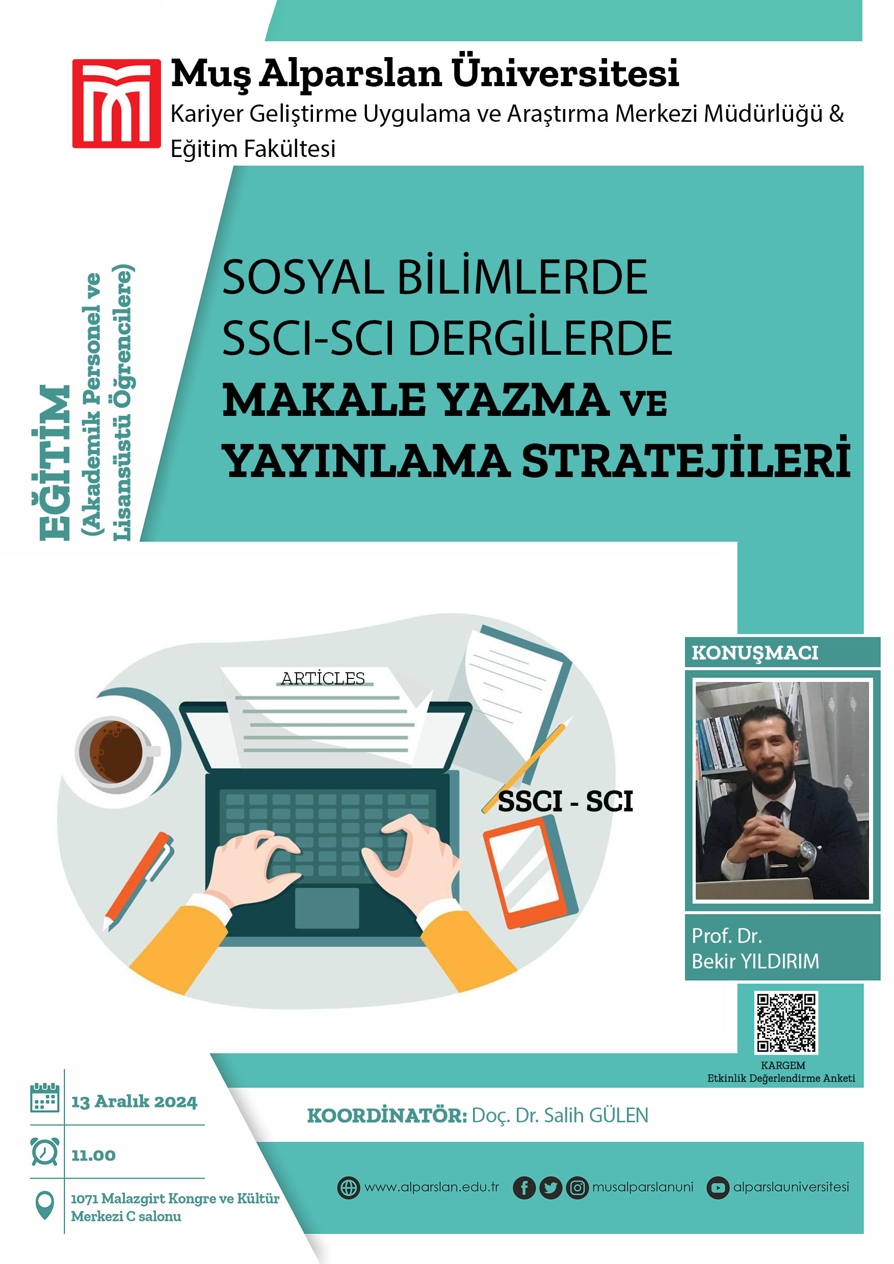 Üniversitemiz 1071 Malazgirt Kongre ve Kültür Merkezi’nde, “Sosyal Bilimlerde SSCI-SCI Dergilerde Makale Yazma ve Yayınlama Stratejileri” konulu bir eğitim programı düzenlendi.