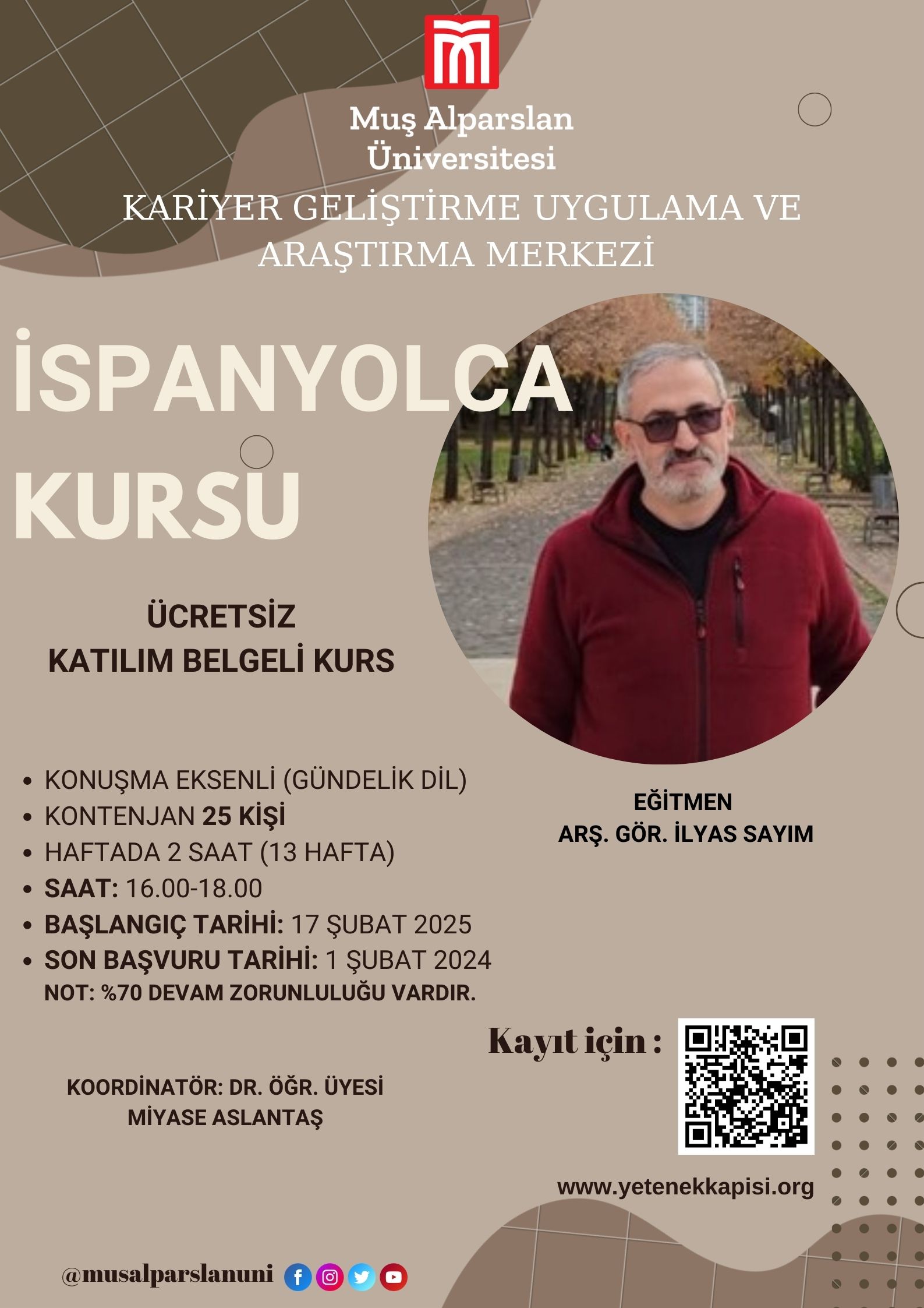 Kontenjan 25 kişi ile sınırlıdır.