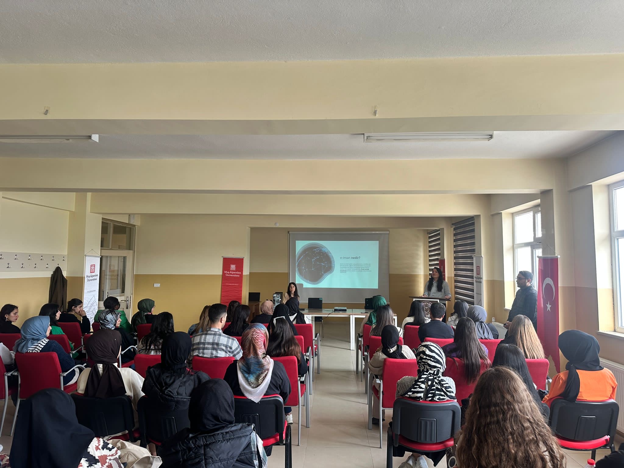 Kariyer Geliştirme Uygulama ve Araştırma Merkezi Müdürlüğünce 23 Ekim 2023 Salı günü saat 13.15’te Bulanık Meslek Yüksekokulu Seminer salonunda Dr. Kenan Özmen  koordinatörlüğünde KARGEM Müdür Yardımcısı Arş. Gör. Dr.  Fatma Betül Şengönül Kozak ve Arş. Gör. Dr. Sıddıka Öztekin tarafından Cumhurbaşkanlığı İnsan Kaynakları Ofisinin hazırladığı yerli ve milli dijital platform olan E-insan hakkındaki sunumu gerçekleştirdi. E-insan platformunun hangi amaçla kurulduğunu anlattıktan sonra bu platformun sunduğu hizmetler hakkında bilgilendirme yaptı. Yetenek Kapısı, Kariyer Kapısı, YTNK TV ve Ulusal Staj Programının bu platform sayesinde tek noktadan erişim sağladığını belirtti. Eğitim ve iş hayatına dair üretilen kariyer hizmetlerinin tanıtımını ve uygulamalı örneklerini göstererek öğrencilerimize seminer verdi. Seminer, soru-cevap bölümüyle sona erdi.