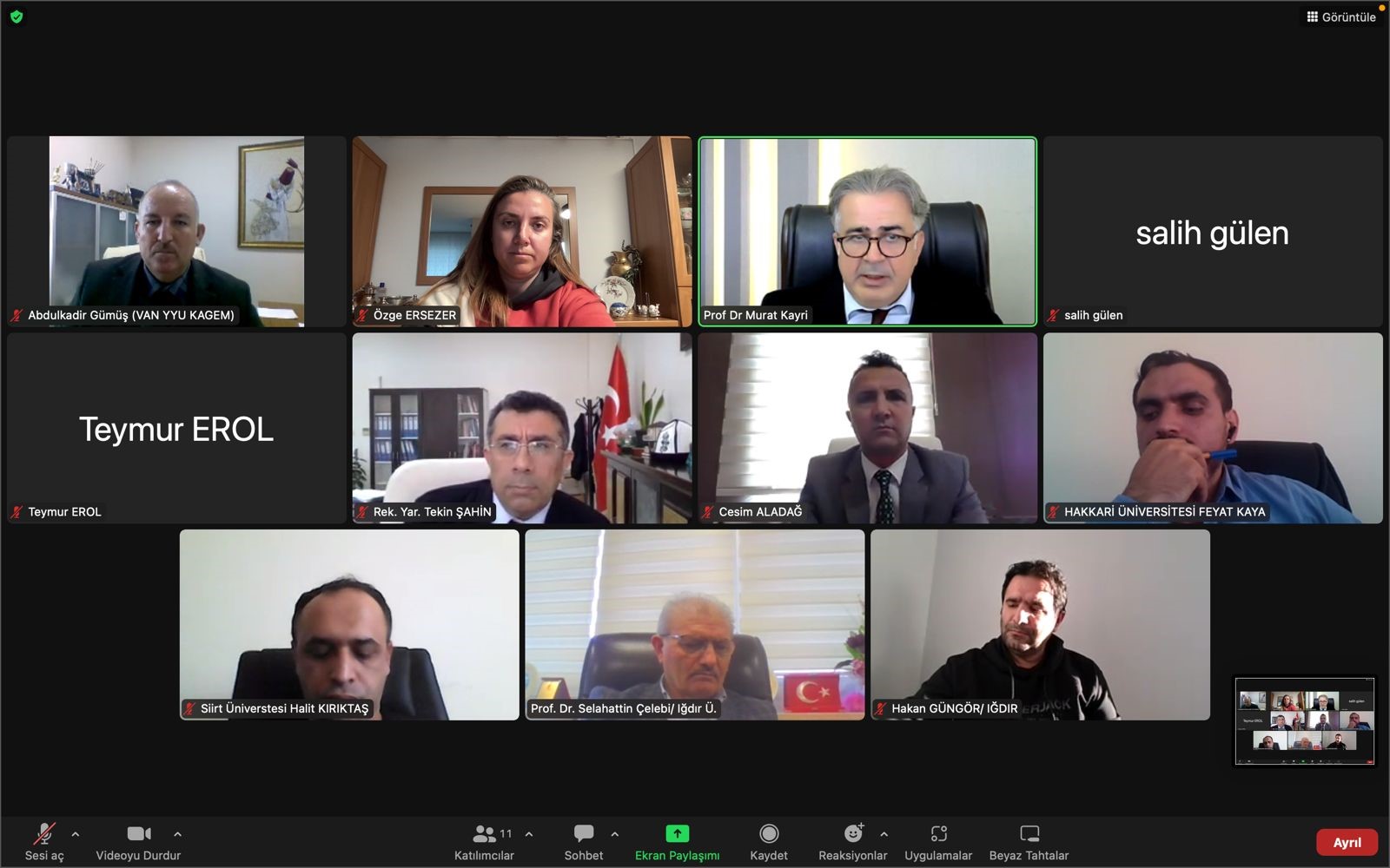 03-04 Ocak 2024 tarihlerinde Van’da gerçekleştirilecek olan DAKAF24’ün ikinci online toplantısı 28.11.2023 tarihinde Van Yüzüncü Yıl Üniversitesi ev sahipliğinde yapıldı. Toplantıya Rektör Yard. Prof. Dr.  Kenan YILDIRIM, KARGEM Müdürü Dr. Öğr. Üyesi Teymur EROL ve KARGEM Müd. Yard. Doç. Dr. Salih Gülen katıldı.  Üniversitemizin yanı sıra fuarın diğer paydaşlarından olan Bitlis Eren, Hakkâri, Iğdır ve Siirt Üniversiteleri Doğu Anadolu Kariyer Fuarı’nın (DAKAF’24) toplantısına online katıldılar.