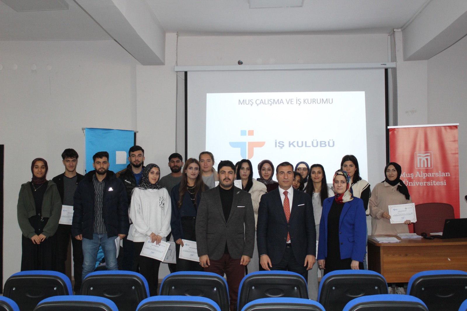Muş Alparslan Üniversitesi KARGEM ve İŞKUR Kampüs Ofisi iş birliğiyle Varto Gıyasettin Bingöl Meslek Yüksekokulu öğrencilerine yönelik “İş Kulübü Eğitimi” düzenlendi.